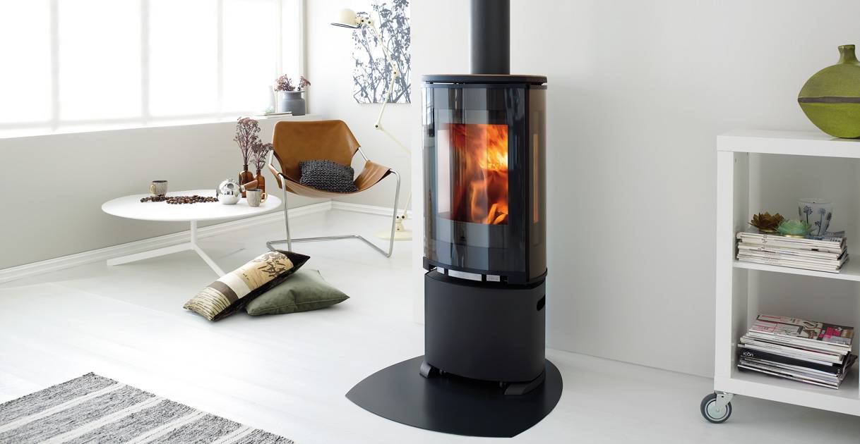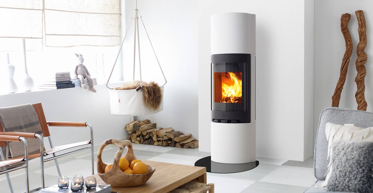 Jøtul FS 92 is a timeless fireplace in a slim and round shape designed by Eker Design.