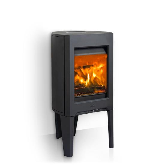 Ezt a kicsi fatüzeléses kályhát új és egyedi megjelenéssel a Hareide Design stúdió tervezte. A mérete és a formája alkalmassá teszi a kályha elhelyezését sarokban vagy a falnál.
